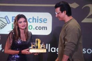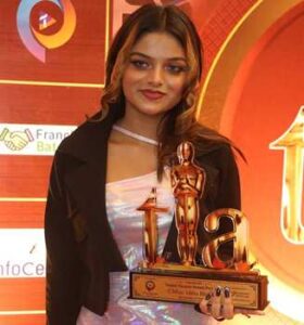 Miss Ishita Biswas ( Aulva Miss India 2024) Received Award From Sharman Joshi And Bhumika Chawla